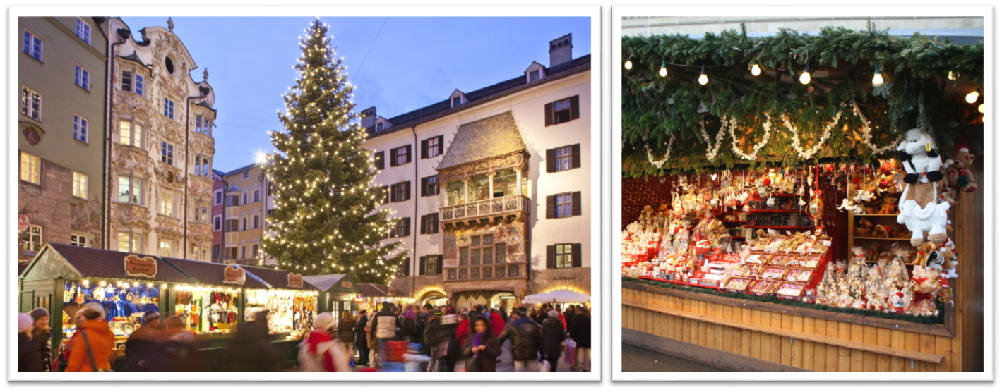 Sebelumnya tour leader kami membawa rombongan ke alun-alun kota. Disana ada bangunan tiga lantai dengan balkon beratap emas yang menjadi ikon kota Innsbruck. Balkon dengan atap tembaga berwarna emas itu dulu dibuat khusus untuk kaisar Maximillian saat dia melihat kegiatan rakyat di alun-alun. Kami pun berfoto di sana. Bangunan ikonik lainnya adalah istana Habsburg, yang hanya kami lewati saja dengan bis.