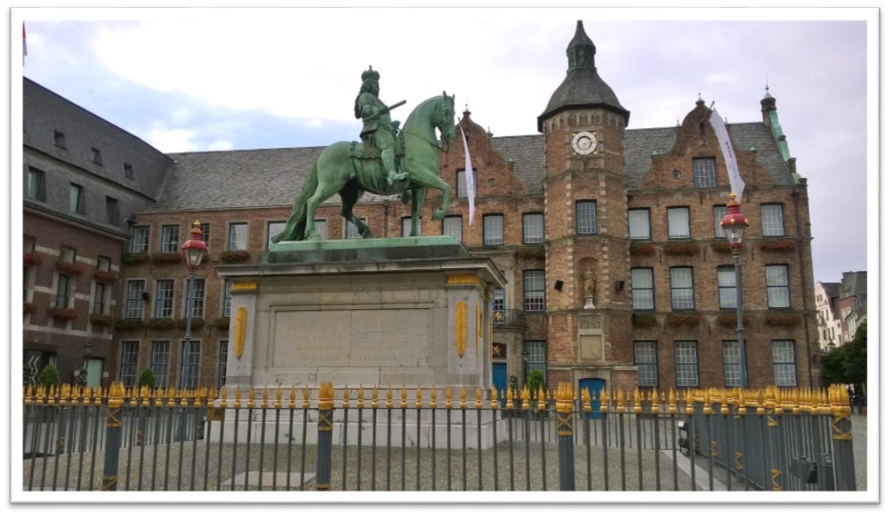 Ditengah alun-alun ada patung bangsawan penguasa sebagian daerah Kerajaan Romawi, yaitu Jan Wellem atau John William yang sedang mengendarai kuda. Selain patung si Bapak ini, banyak patung-patung lain di sekitar alun-alun disertai keterangan dalam Bahasa … Jerman. Karena vocabulary Bahasa Jerman saya hanya sebatas Ich liebe dich, jadi saya gak ngerti patung-patung ini mengenai apa kalau belum di-googling.