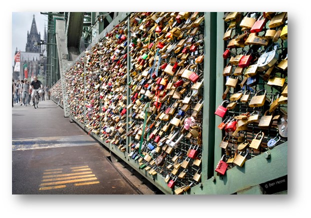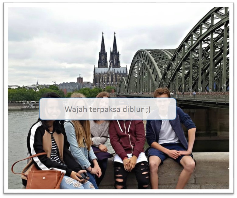 Tiba di best picture spot-nya kota Koln, nampaklah katedral dengan 2 towernya menjulang tinggi menjadi masterpiece-nya dan jembatan love lock melengkung indah di sebelah kanannya. Perjalanan ini tidak terlalu jauh sebenarnya, tapi memakan waktu cukup lama, karena anak-anak mencari gembok persahabatan yang mereka pasang di jembatan love lock, 2 tahun yang lalu.