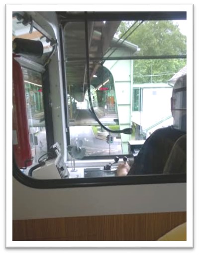 Masih terengah-engah tiba di peron, mumpung kereta belum datang, kami foto bareng lagi. Baru foto 1 jepretan, datanglah keretanya, tepat waktu. Lucunya, kereta tidak berhenti di peron tempat kami berdiri, tapi berhenti 20 meter sebelumnya. Kami jadi berlari-lari kerepotan menuju gerbong yang terbuka. Saat melewati lokomotif, nongol kepala sang masinis di jendela. Ia berseru sesuatu dalam Bahasa Jerman sambal tertawa. Astaga, ternyata masinis ini jail sengaja ngerjain kami dengan berhenti agak jauh dari tempat kami menunggu. Masih jail juga, saat kami tepat di depan pintu, tiba-tiba pintu gerbong tertutup. Sambil tertawa, si Ayah berteriak sesuatu ke masinis sambil menekan tombol pembuka pintu. Kami tidak sempat minta penjelasan apa yang mereka teriakkan. Karena begitu kami berempat naik, kereta segera jalan.
